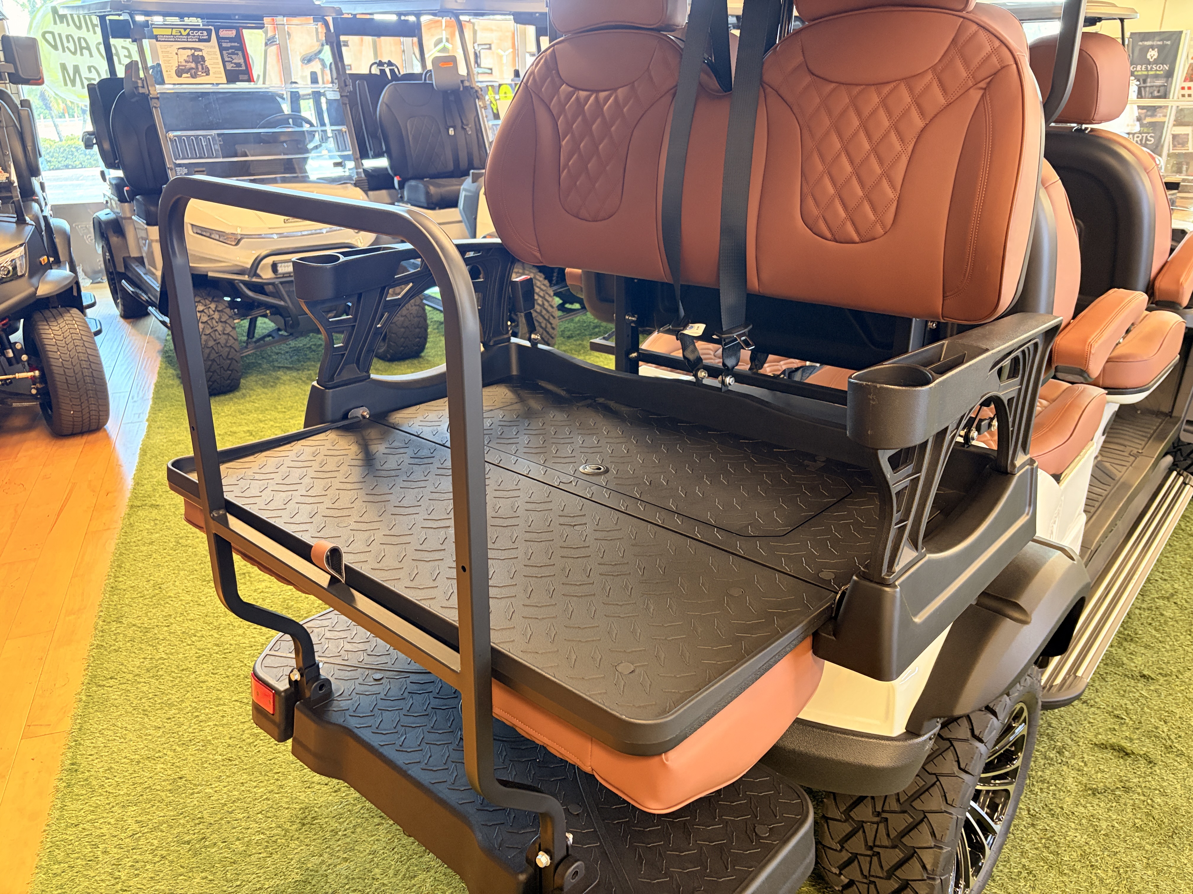 Greyson offers style and functionality in our brand-new 6-seater electric golf carts. Immerse yourself in a mesmerizing blend of advanced technology, impressive performance, and unparalleled comfort. With its sleek design, this golf cart isn’t just a mode of transport—it’s a testament to your refined taste and a promise of an unforgettable driving experience.