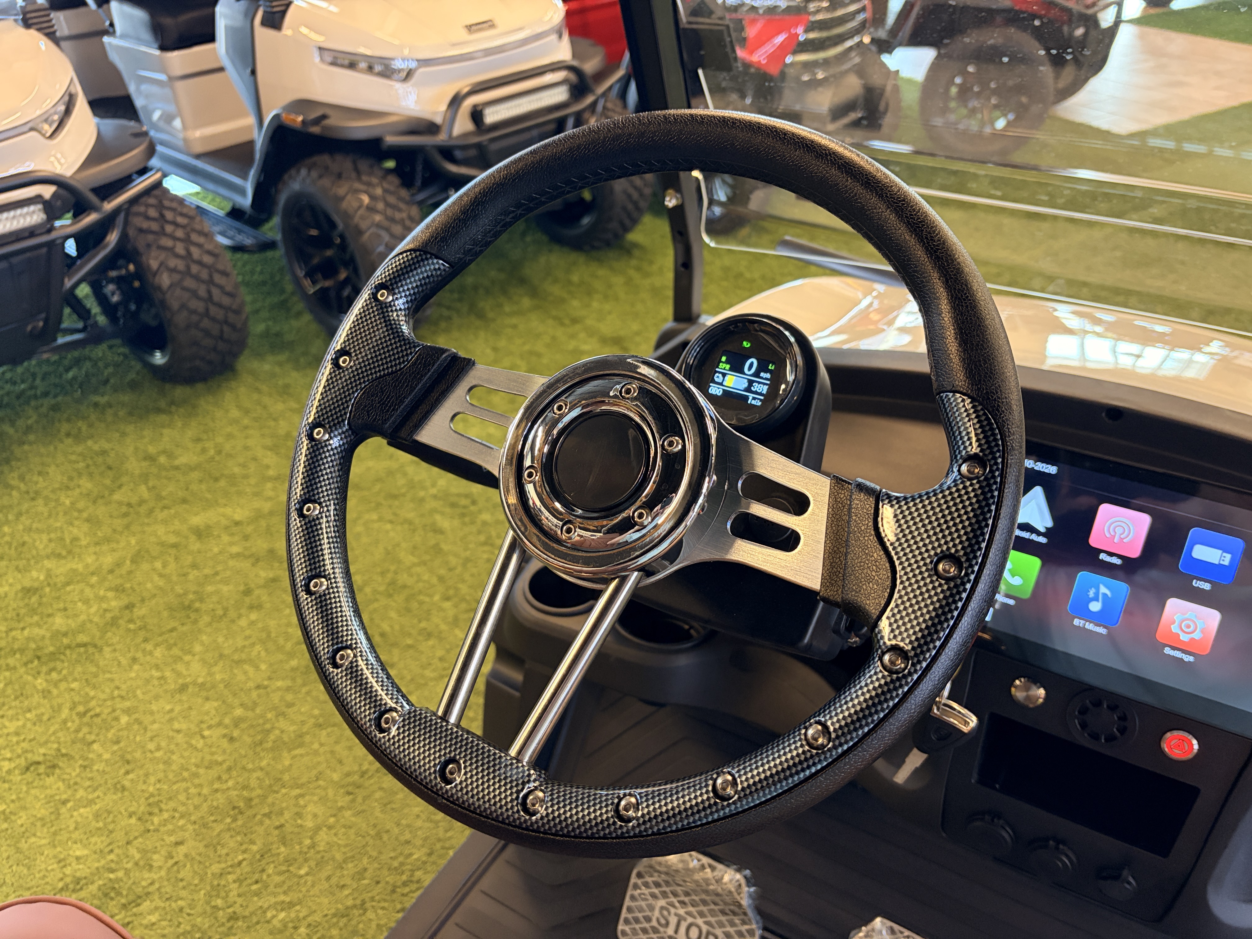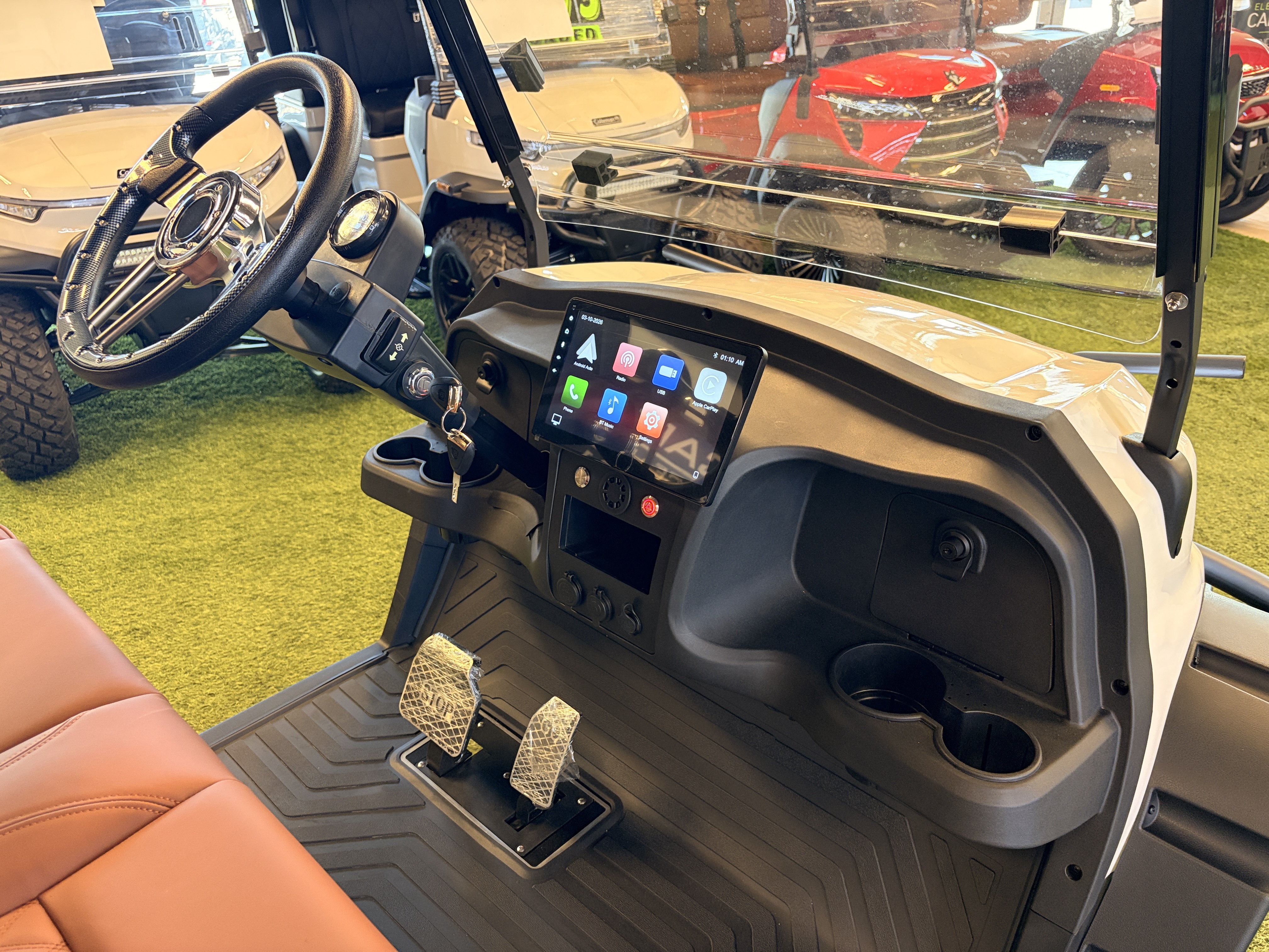 A state-of-the-art, large touchscreen monitor at the heart of the control panel seamlessly bridges the gap between your cart and the digital world.