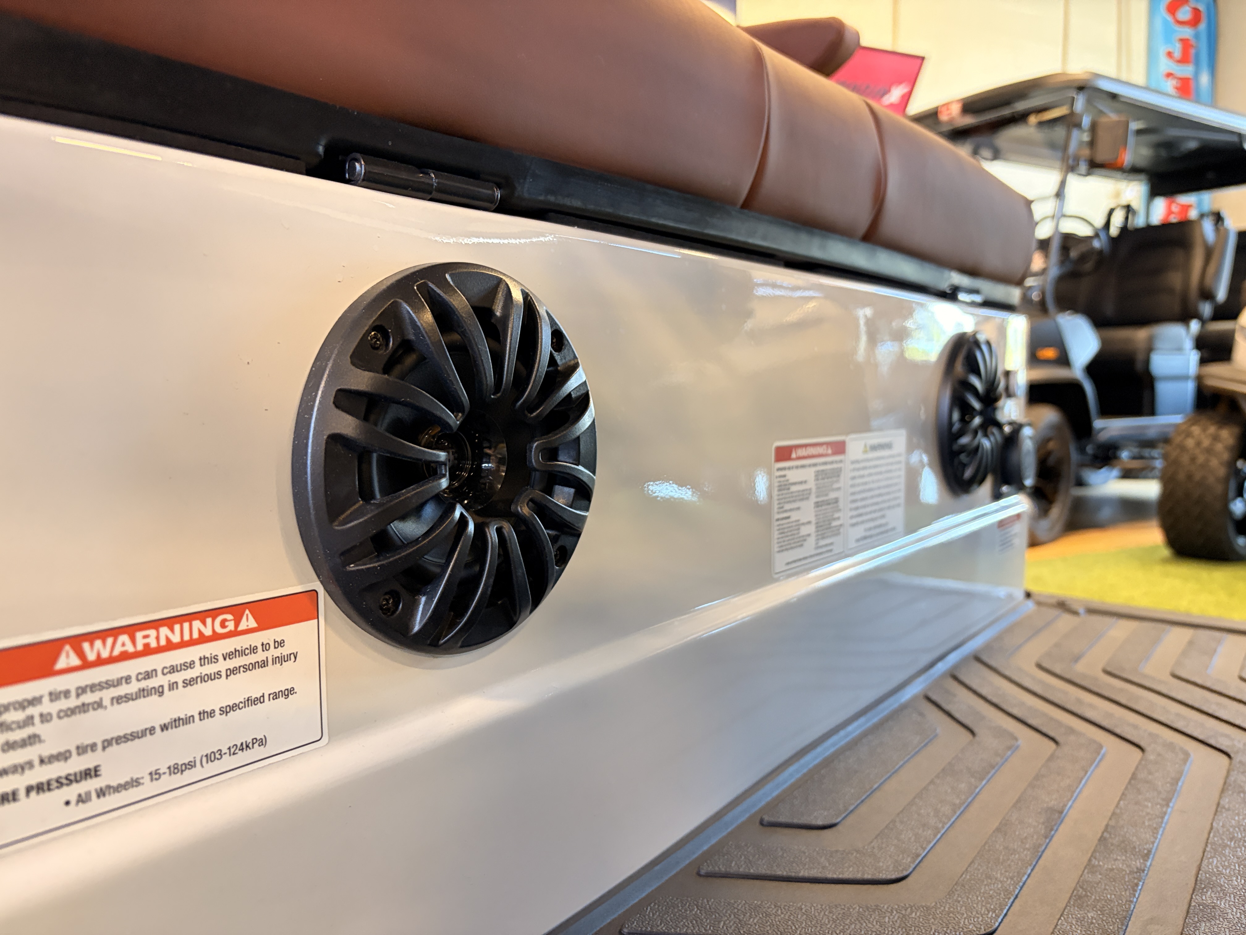 Our cart’s premium 4-speaker sound system delivers crystal clear audio for your favorite music, audiobooks, or podcasts. Enjoy the benefits of a superior sound system wherever the adventure takes you!