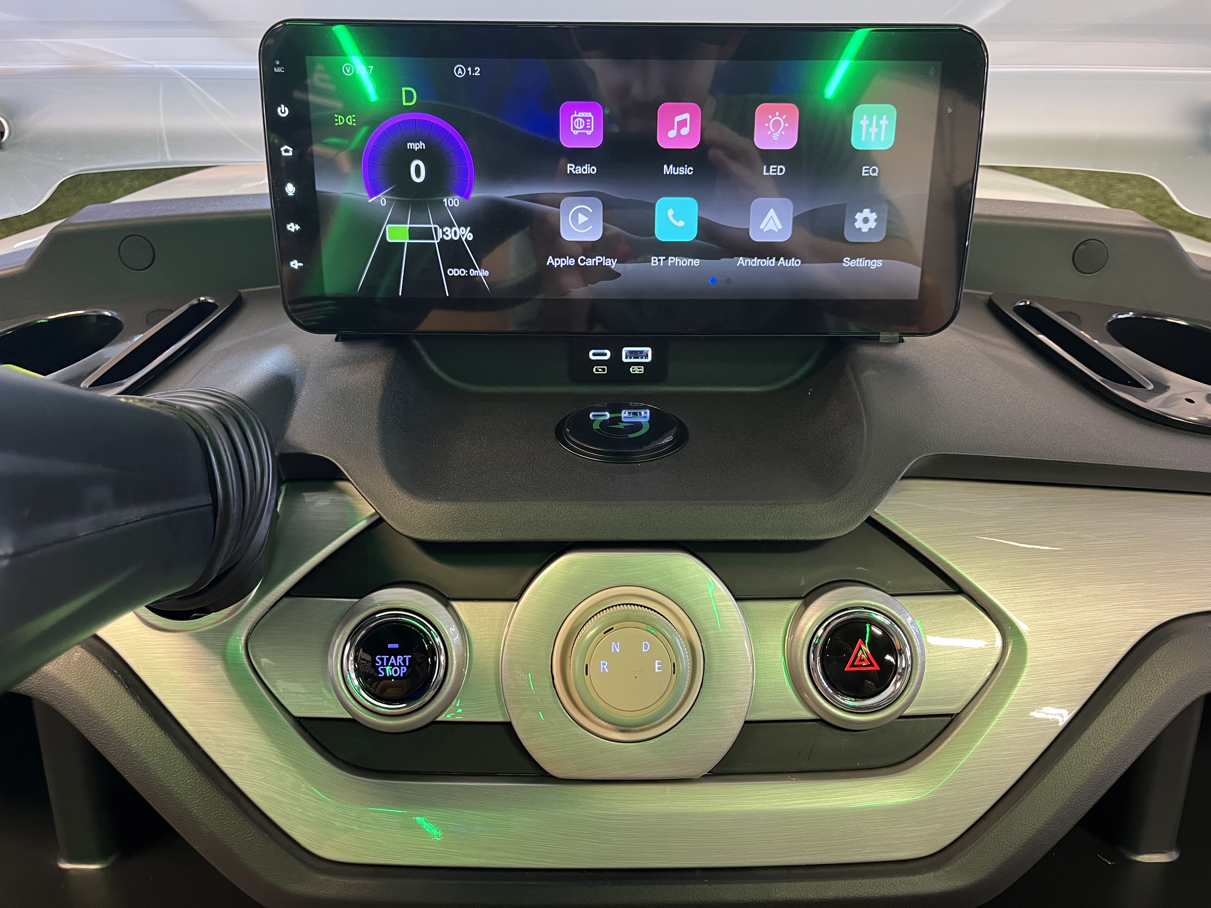 Dash Molded Instrument Panel, LED Speedometer, Single-Arm Combination Switch, FNR Switch, Multiple Cup Holders, Double USB Ports