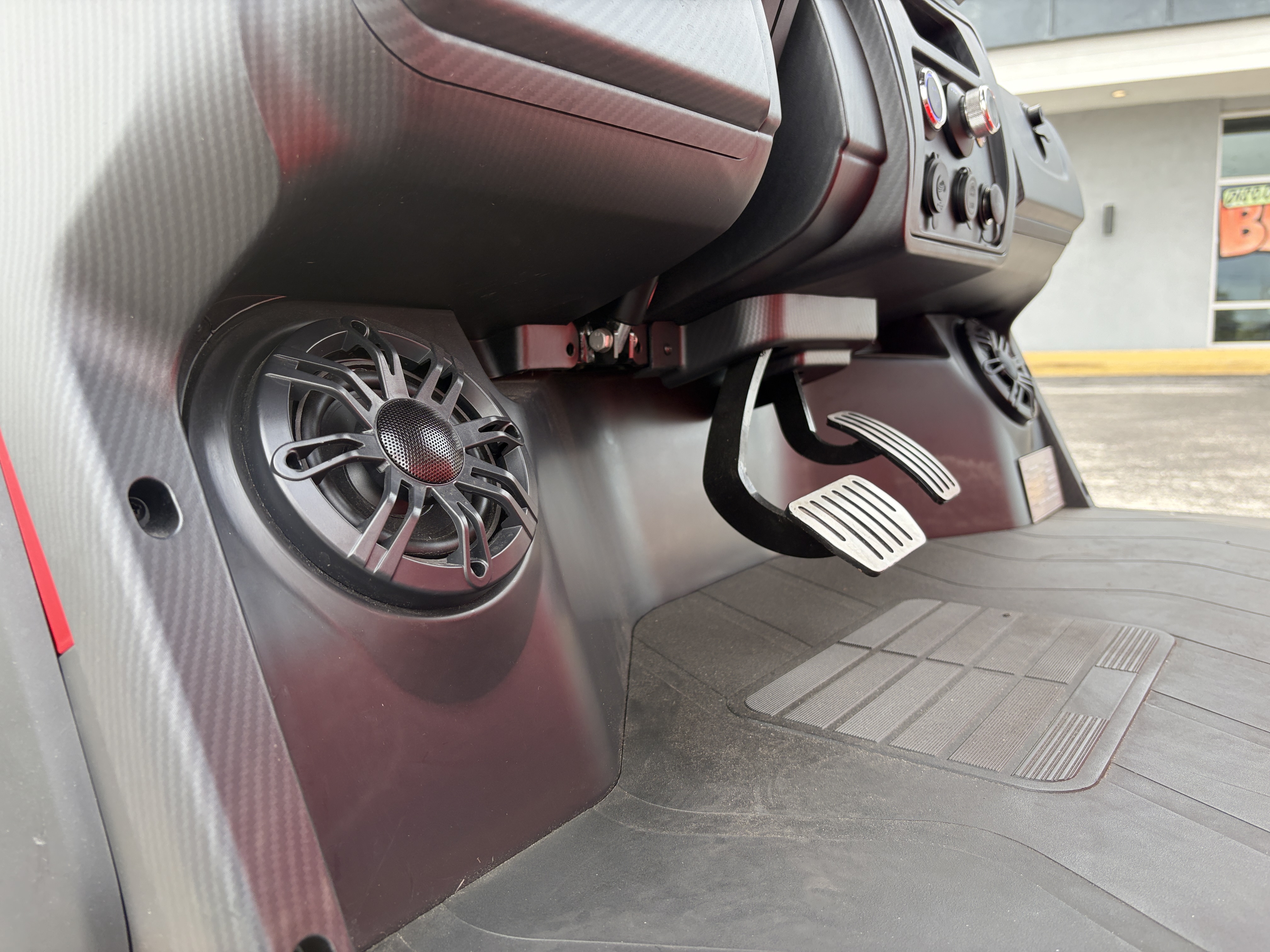 Our cart’s premium 4-speaker sound system delivers crystal clear audio for your favorite music, audiobooks, or podcasts. Enjoy the benefits of a superior sound system wherever the adventure takes you!