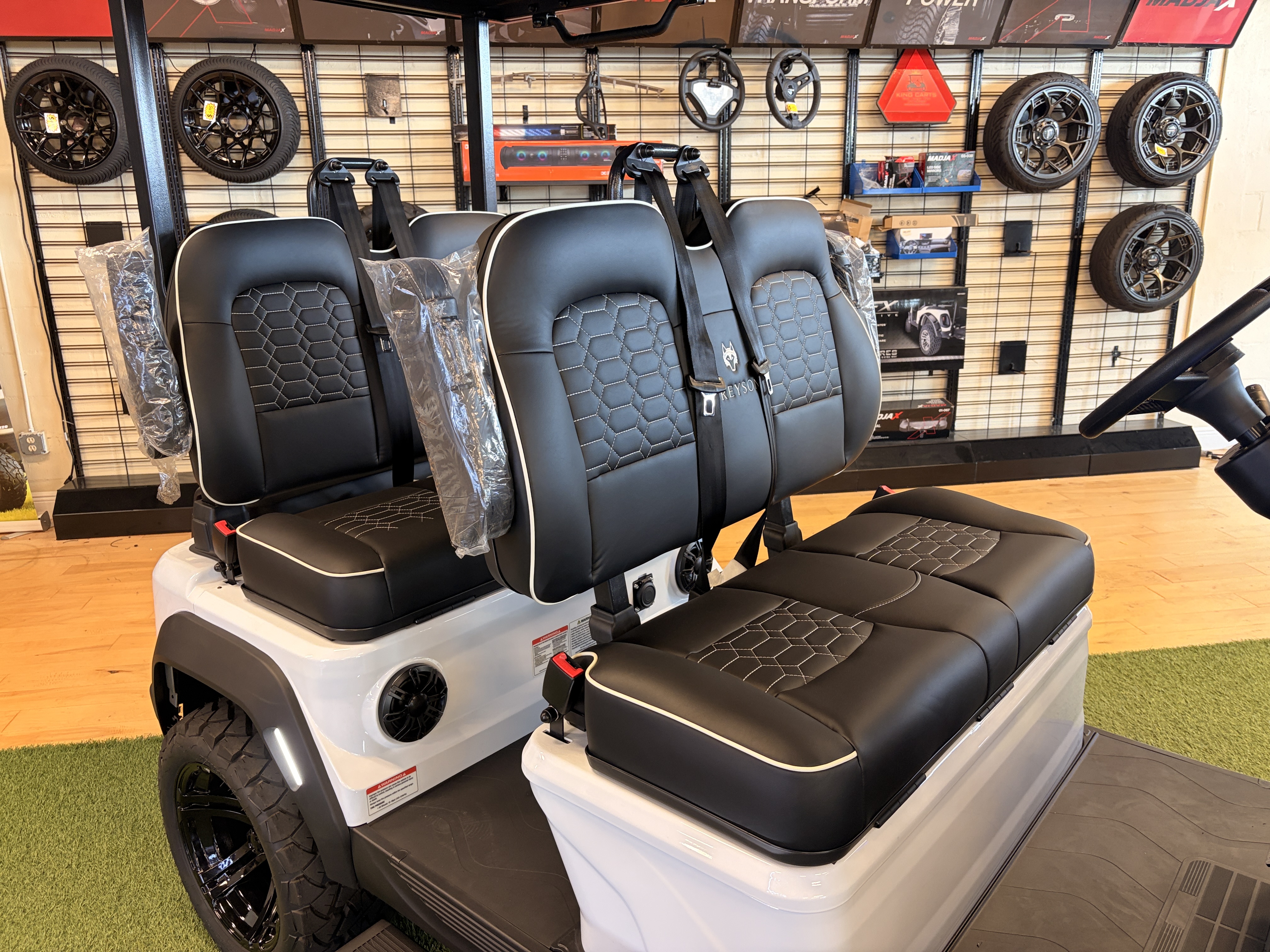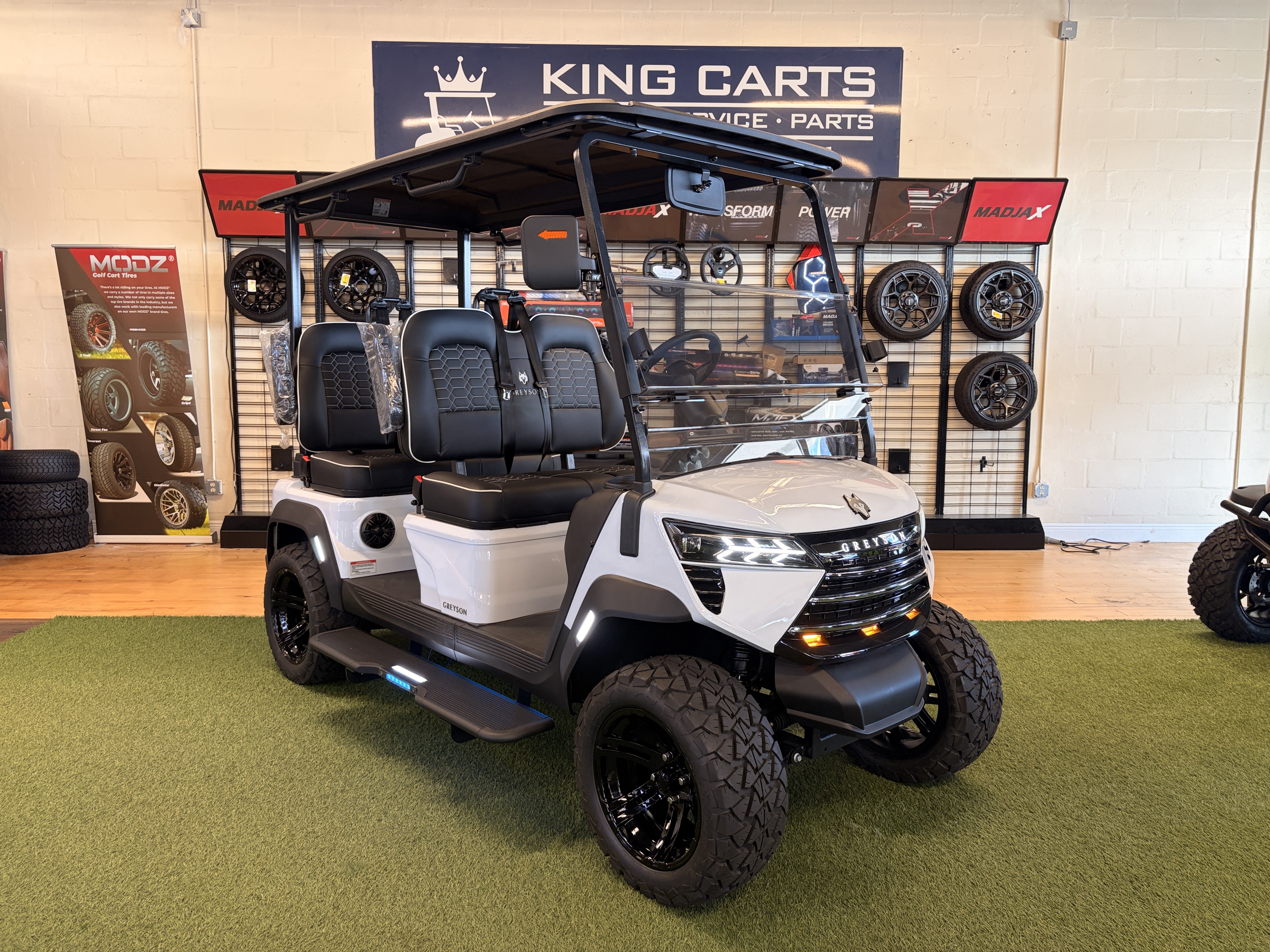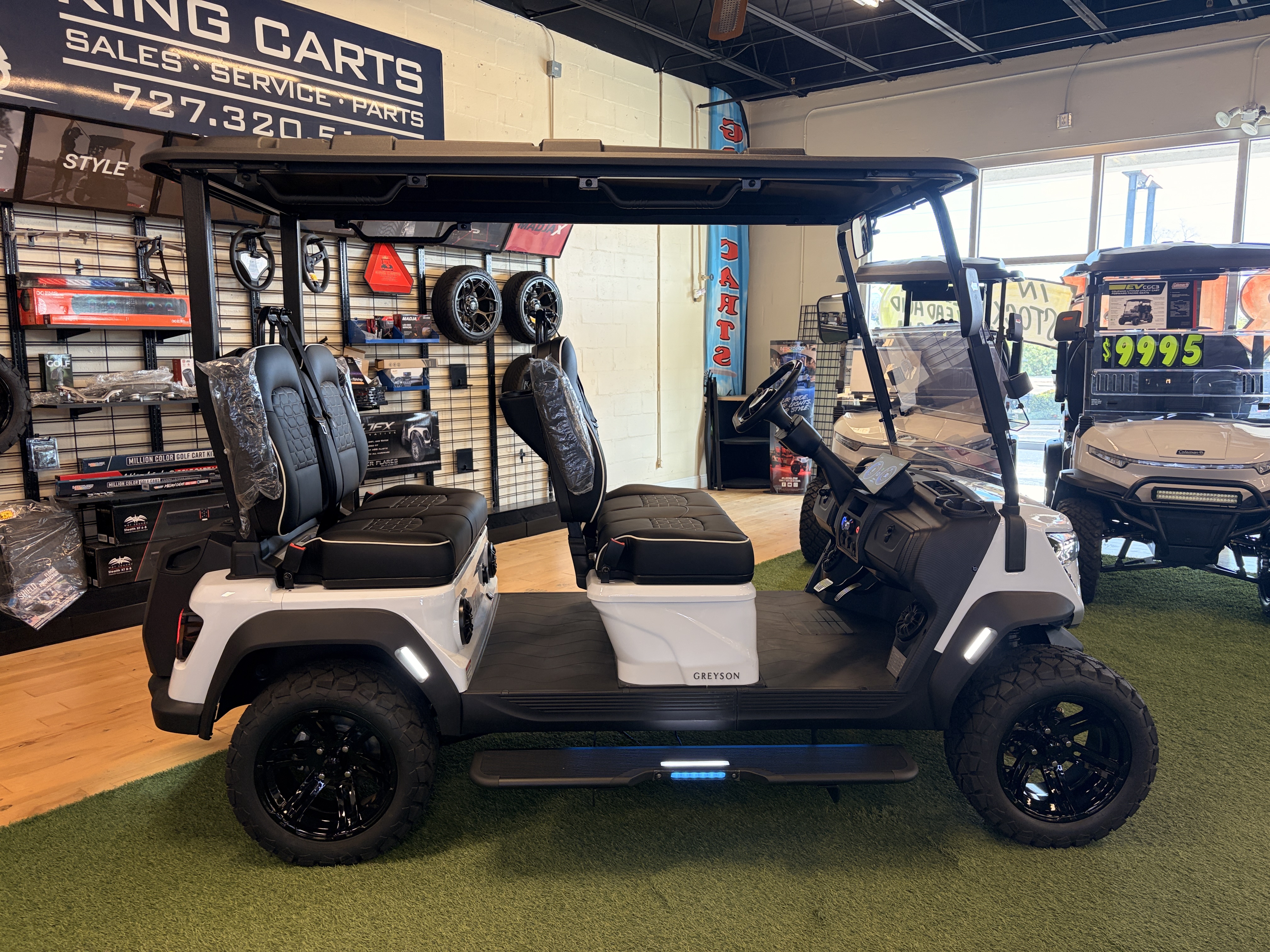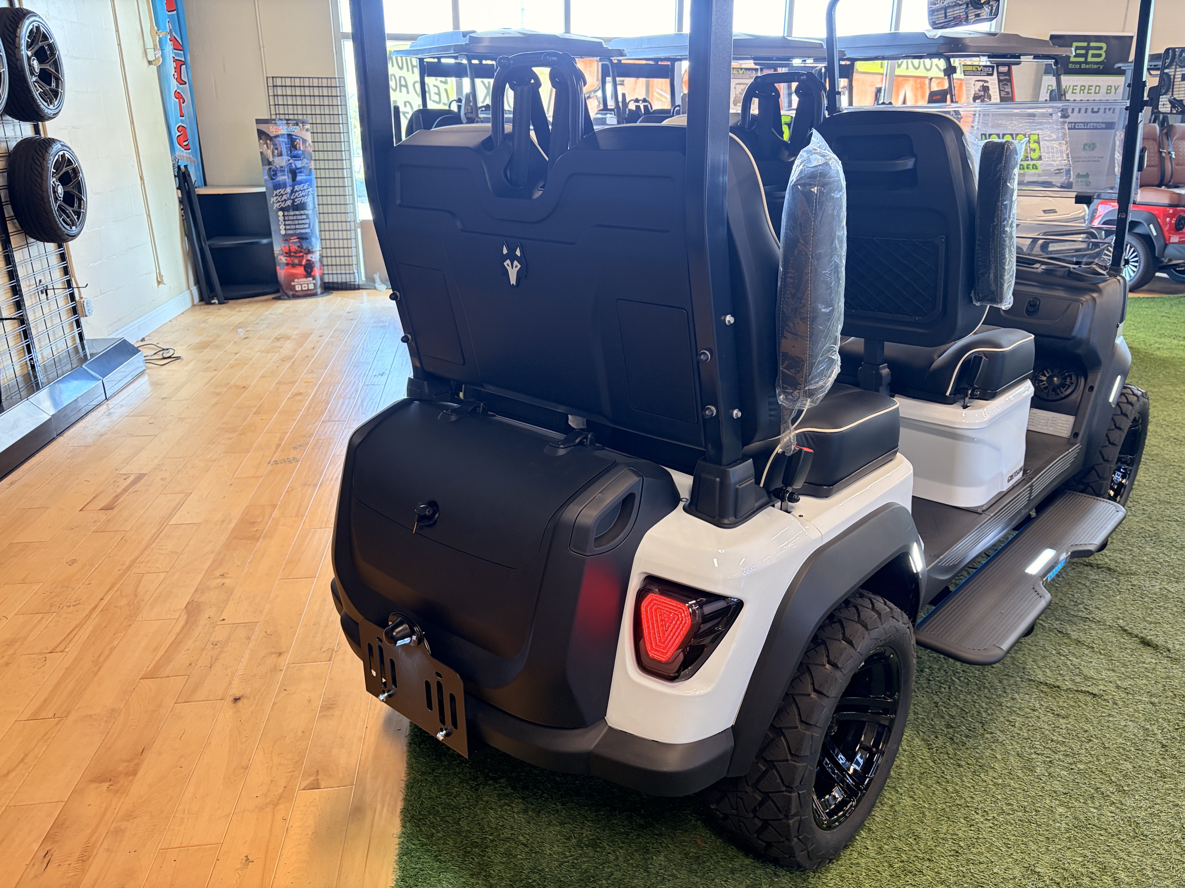 For customers who prefer everyone facing the same direction, the Skoll offers a lifted, forward-facing 4-seat layout. Higher ground clearance makes it a strong choice for properties with varied terrain, while the forward seating appeals to families and groups who prioritize conversation and shared sightlines.