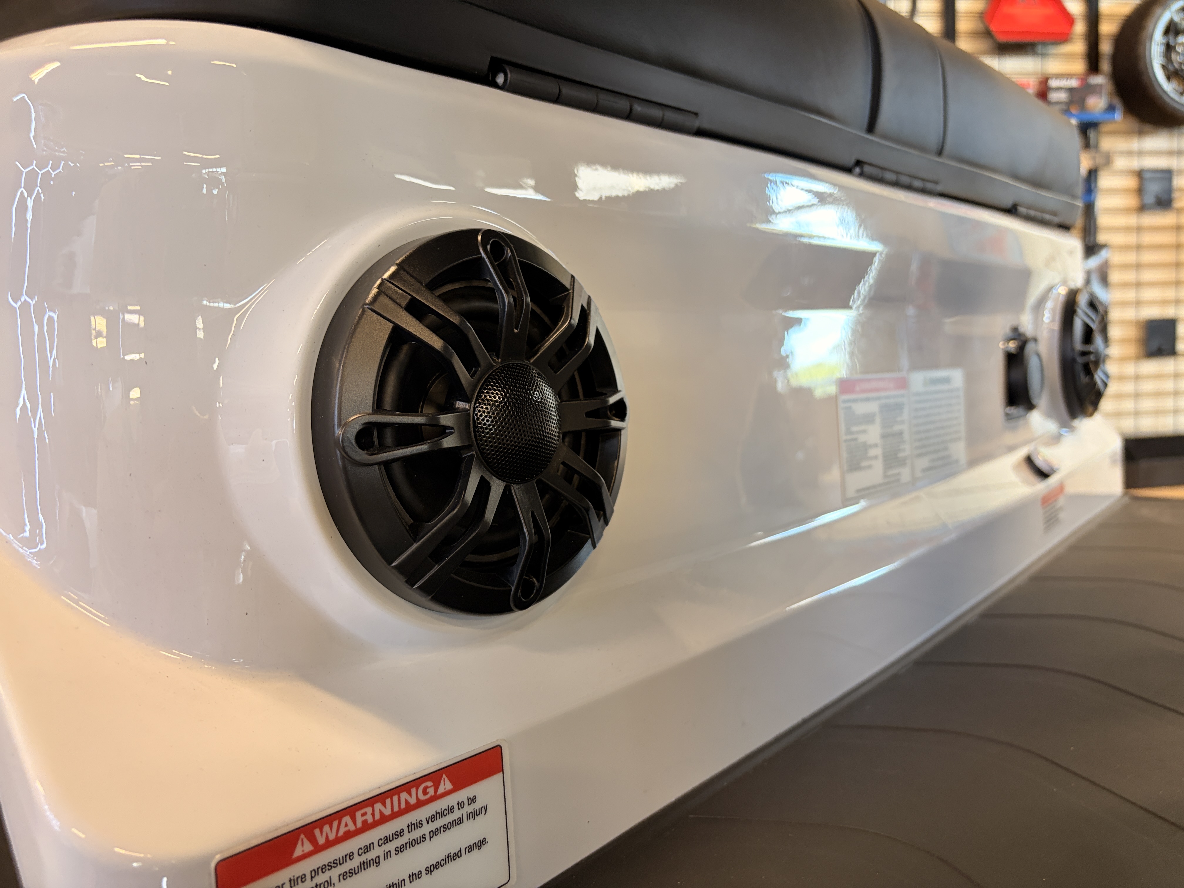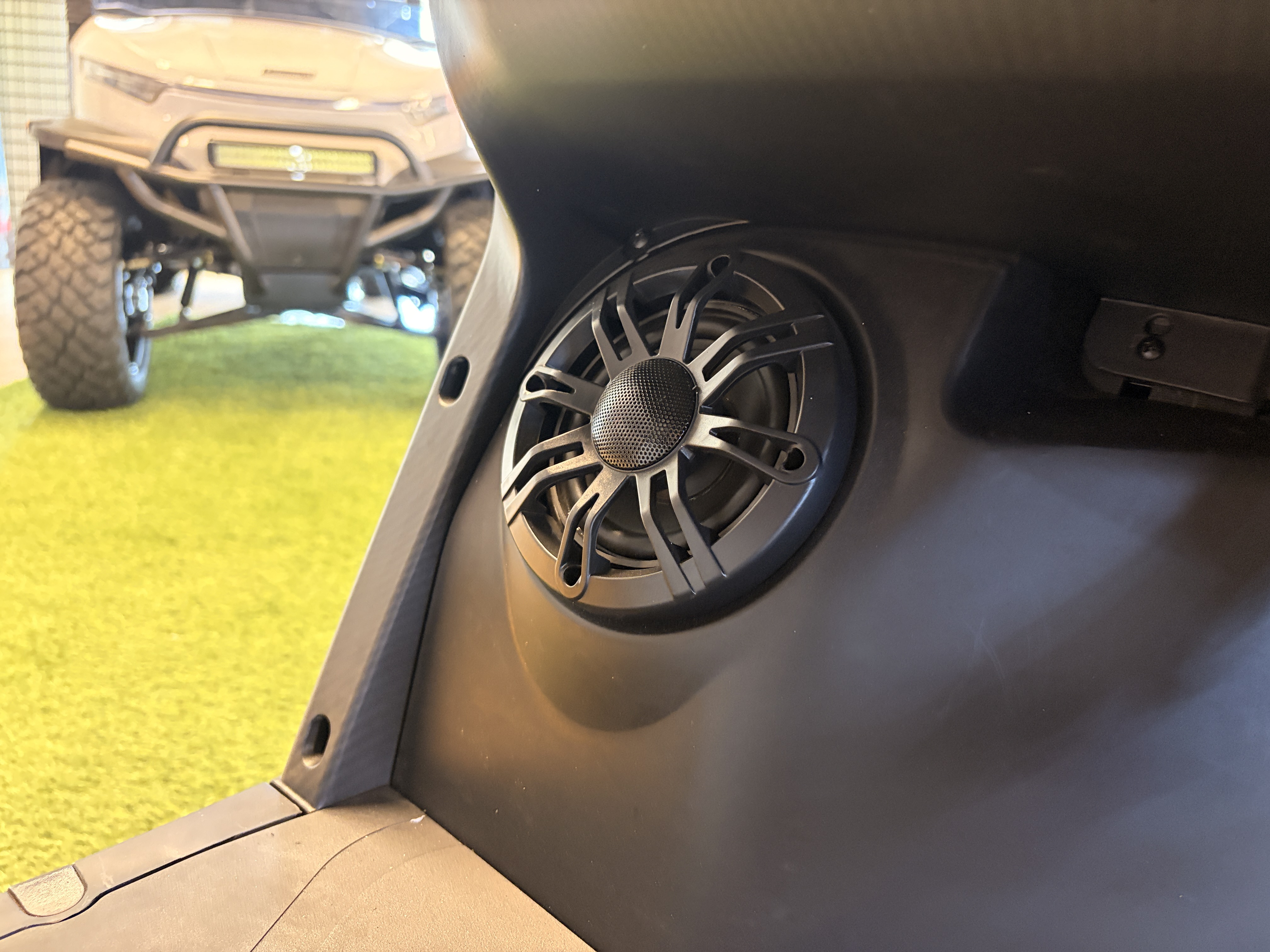 Our cart’s premium 4-speaker sound system delivers crystal clear audio for your favorite music, audiobooks, or podcasts. Enjoy the benefits of a superior sound system wherever the adventure takes you!