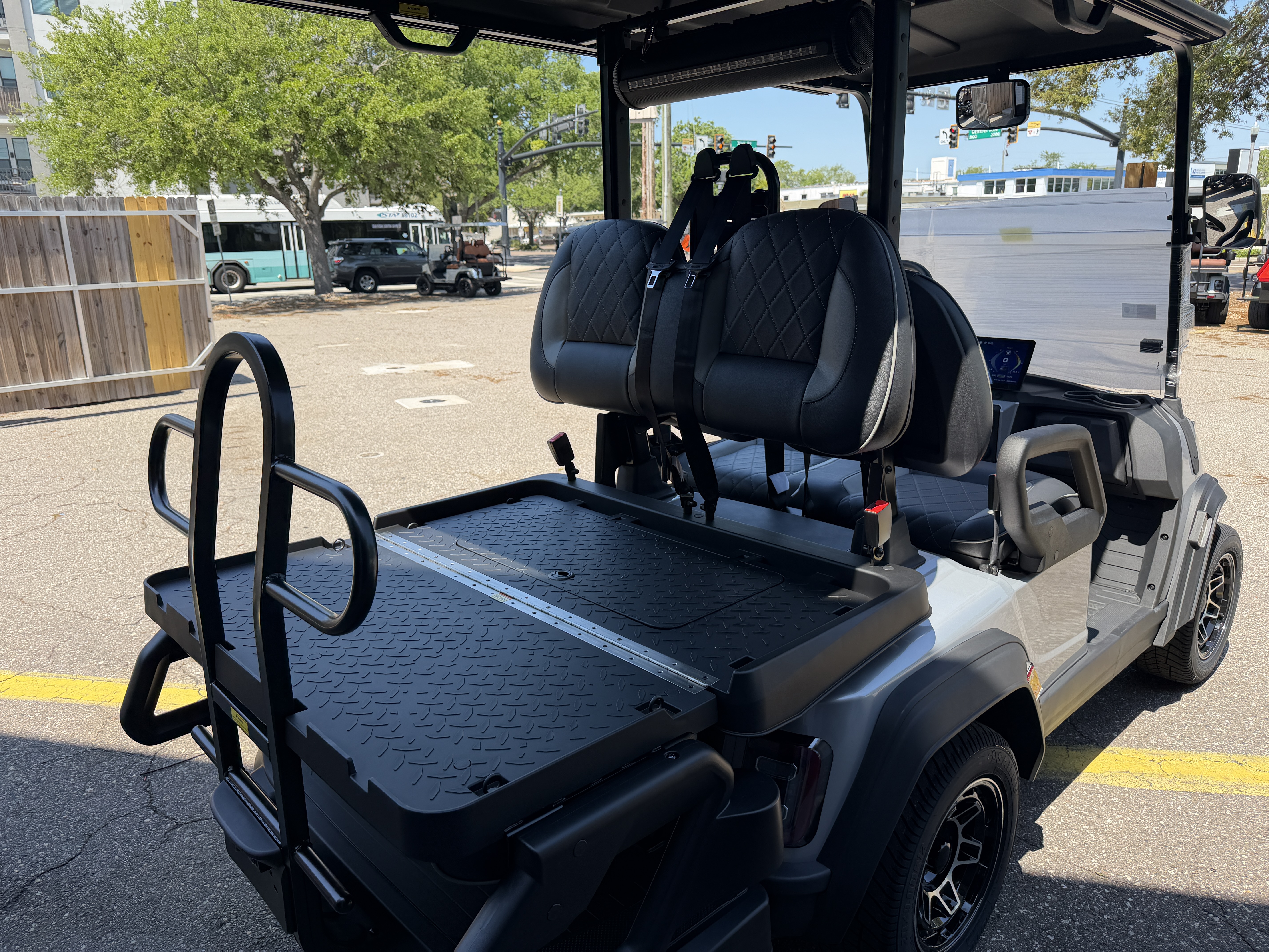 Safety 3-Point Restraint Seatbelts (x4), Assist Bars, Reverse Buzzer, Charge Indicator, Back-up Camera, Digital Gauges, Rearview Mirror, Side Mirrors with Lit Turn Signals, Hazards, Horn