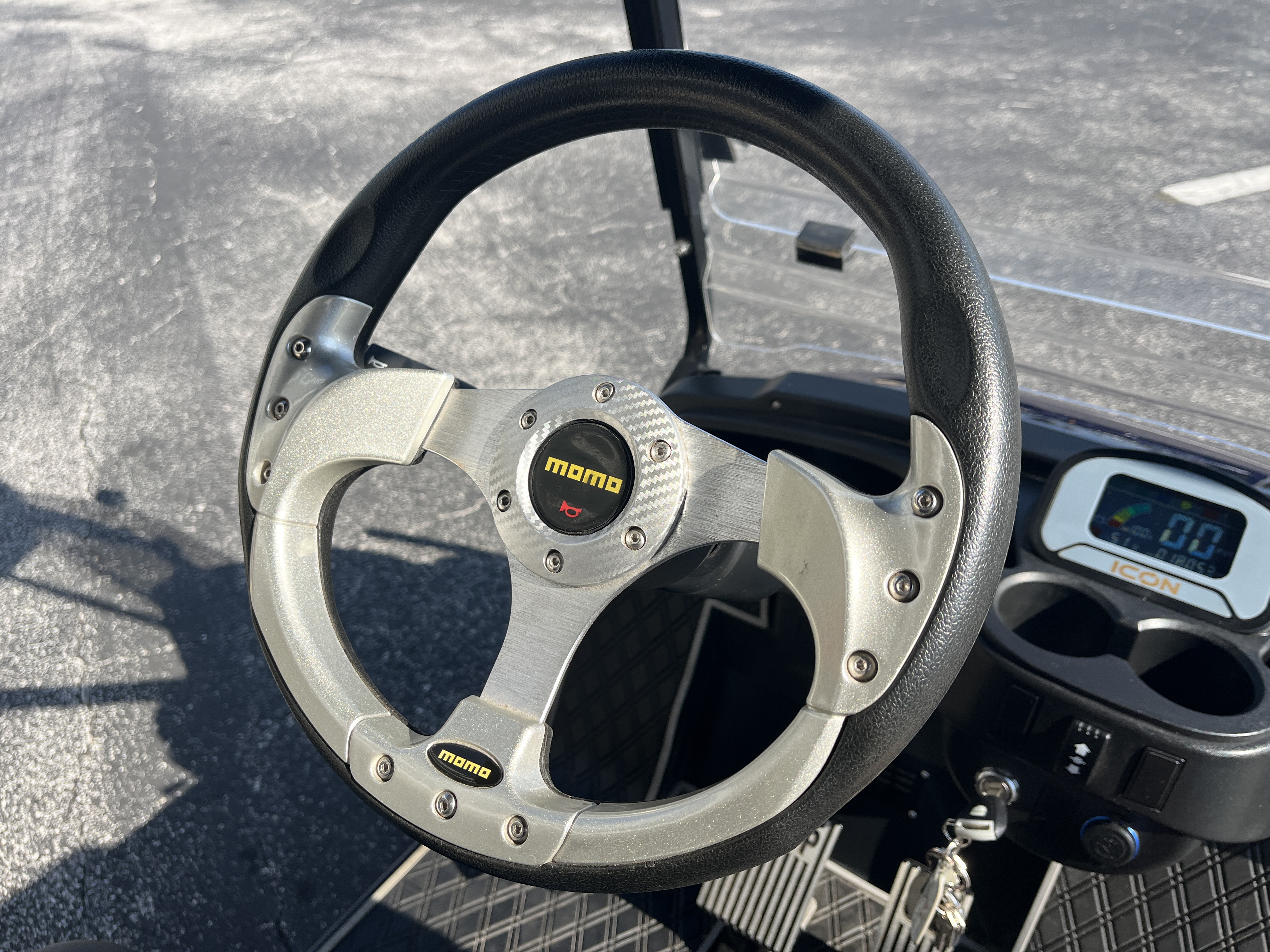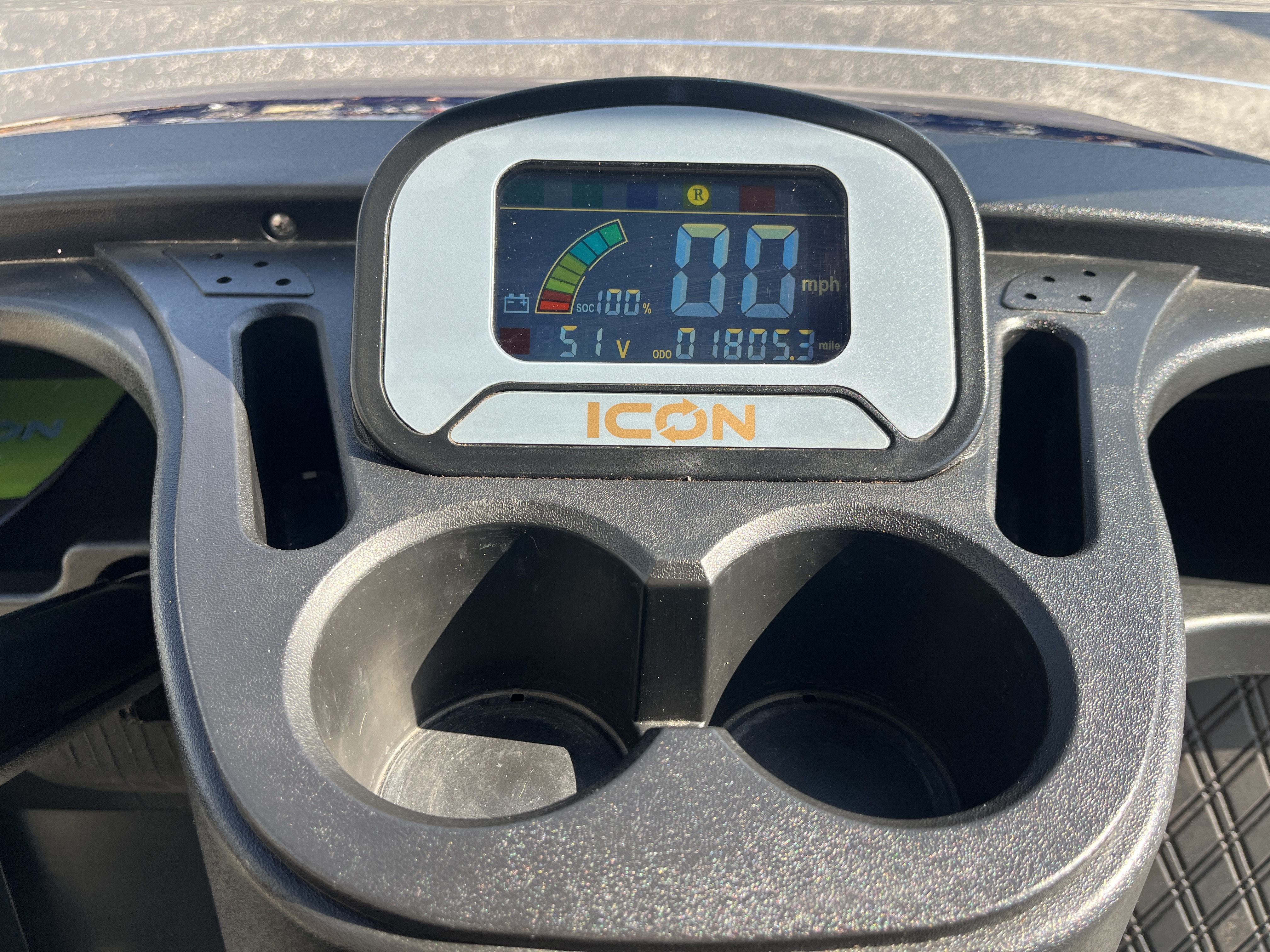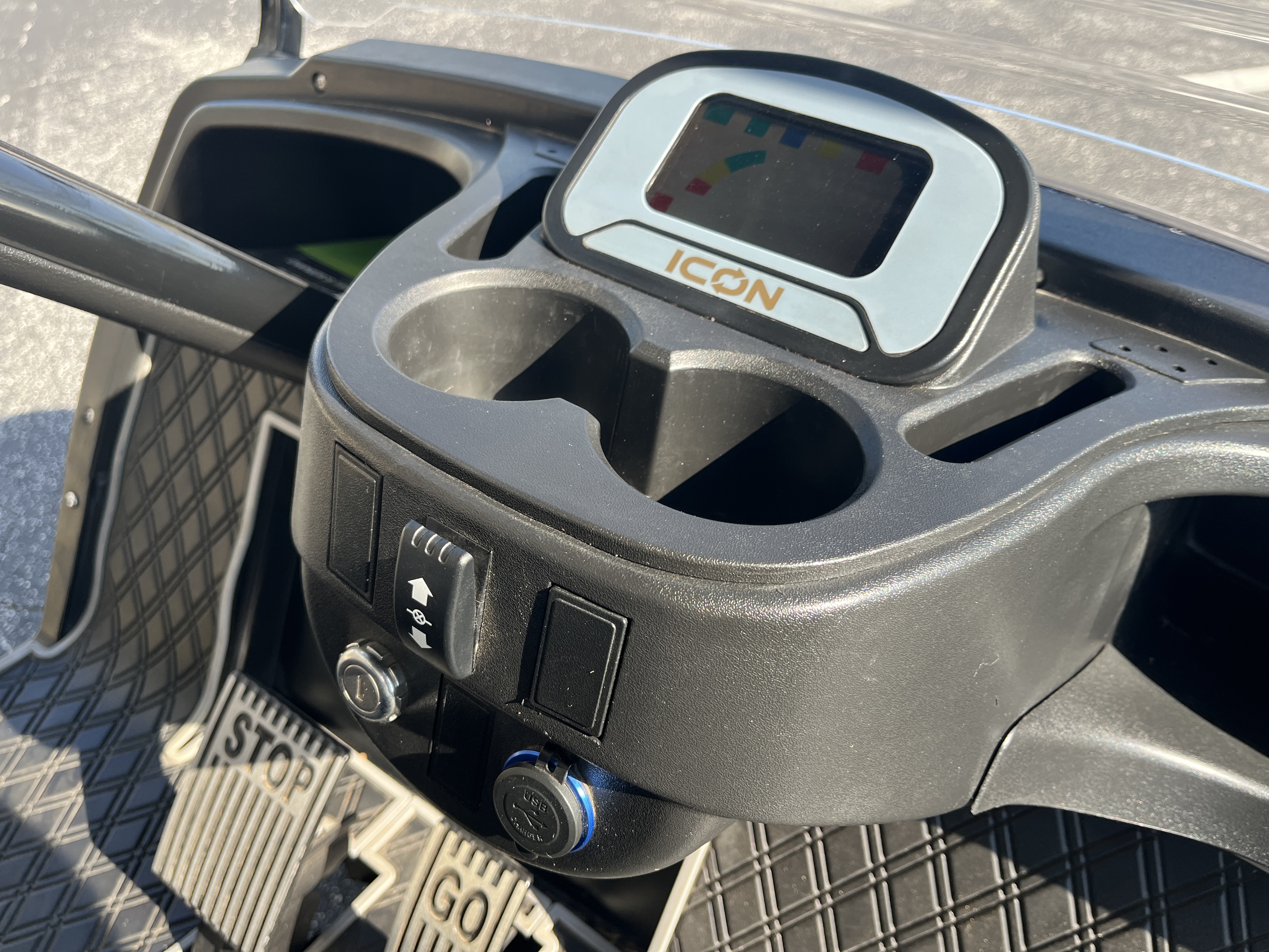 Instrumentation / Dash: Fully-integrated digital instrument cluster; USB + 12V plug; forward/neutral/reverse switch; cup holders; Standard Icon Display with speed reader, trip odometer, and battery indicator.